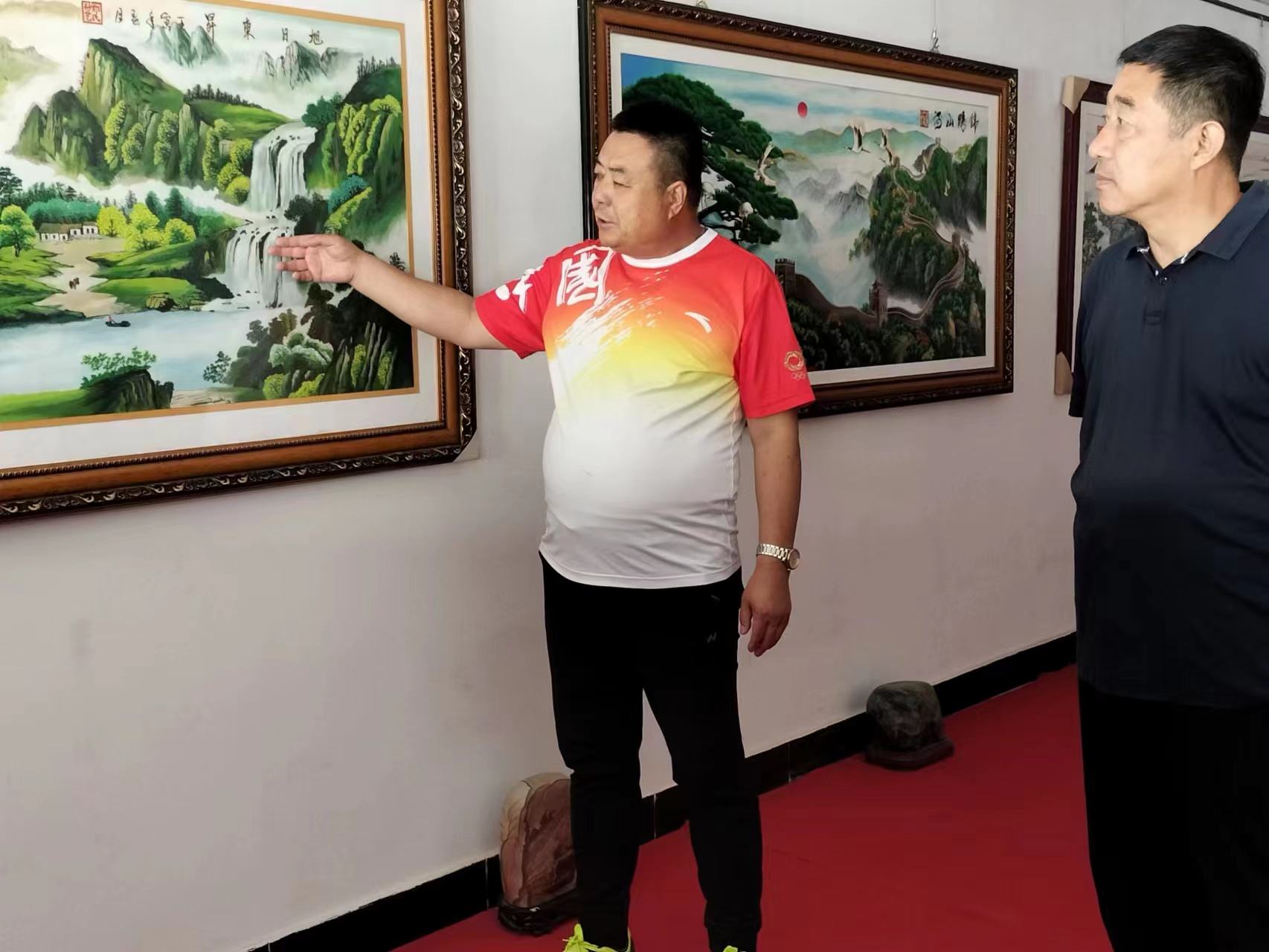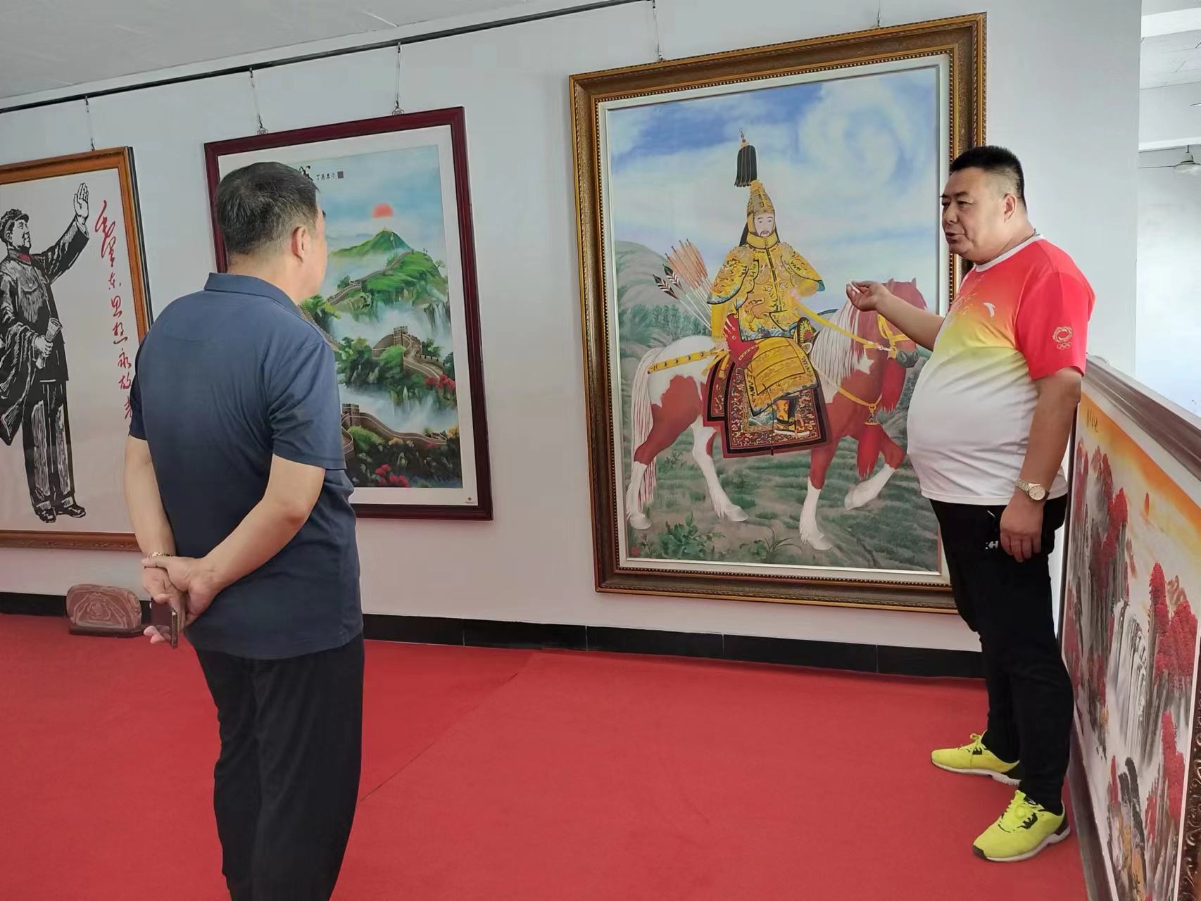 王智慧經(jīng)理等人在鄭總的陪同下參觀了砂畫制作車間和鄭氏砂藝非遺文化展館,參觀過程中,鄭總對鄭氏砂藝(畫)的發(fā)展歷程、制作流程、企業(yè)榮譽和發(fā)展前景做了簡單介紹。同時鄭總就企業(yè)代表性砂畫及其制作時采用的材料及背后的歷史文化進行了簡略描述。