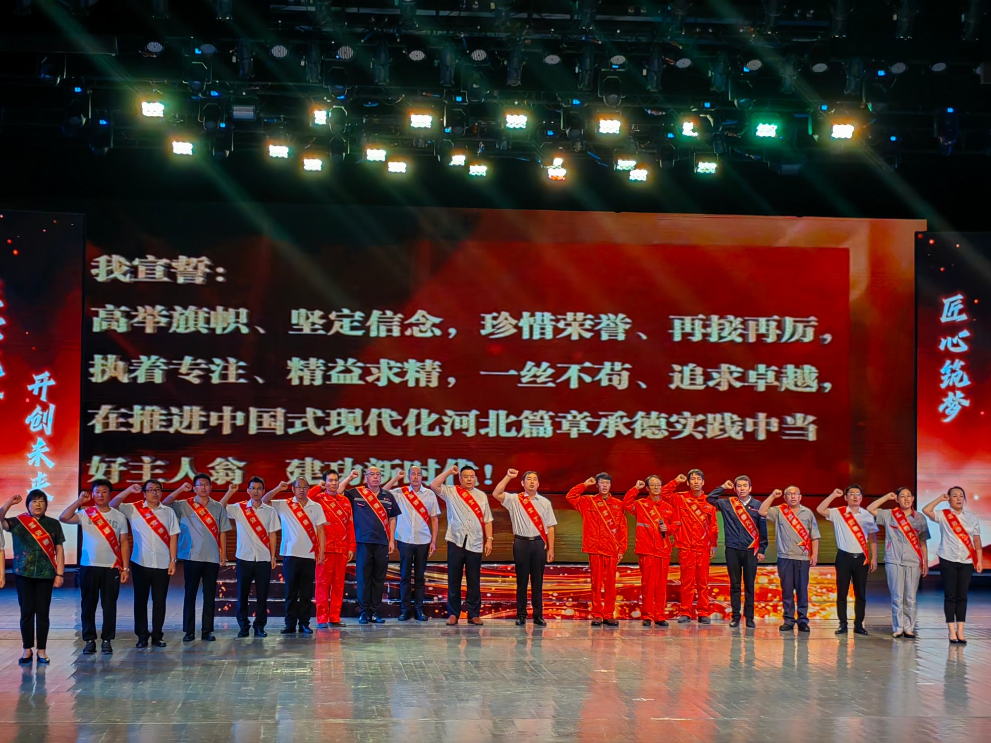 7月6日上午,2023年河北工匠、承德大工匠、承德工匠年度人物發(fā)布儀式在承德大劇院舉行,承德市委副書記蔣文冬,承德市委常委、宣傳部部長趙青英,承德市人大常委會(huì)副主任郭士剛,承德市人民政府副市長甄毓敏等相關(guān)領(lǐng)導(dǎo)出席了此次活動(dòng),并與工匠年度人物榮譽(yù)獲得者進(jìn)行合影留念。鄭氏砂藝(畫)第五代非遺傳承人鄭鐵軍榮獲“2023年河北工匠年度人物”榮譽(yù)稱號(hào)。
