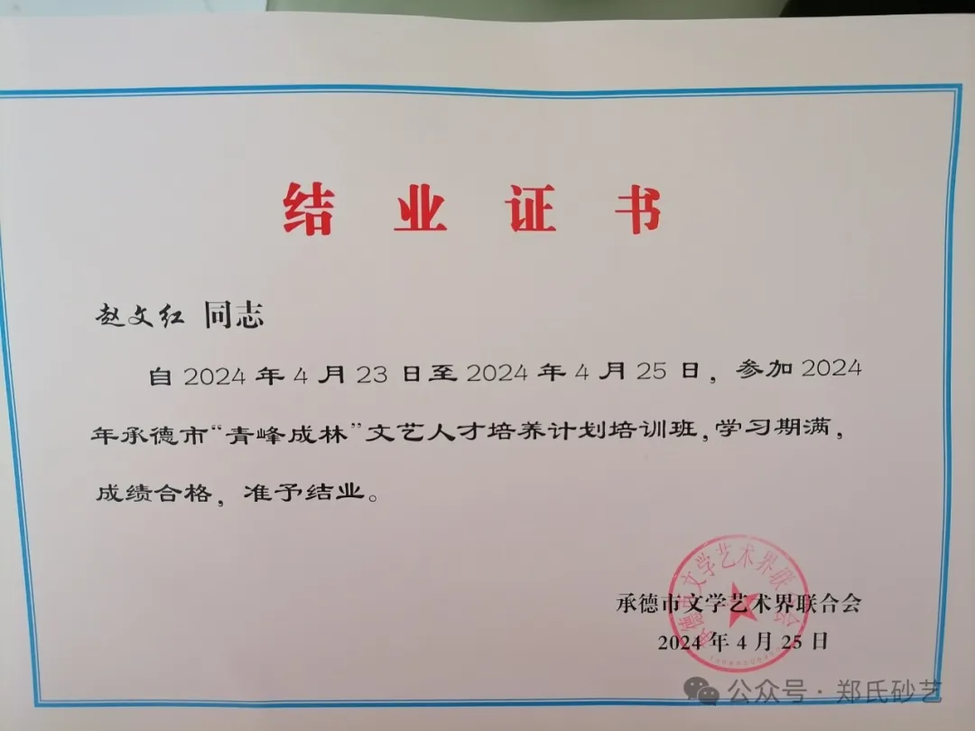 鄭氏砂藝技師入圍2024年承德市“青峰成林”文藝人才培養(yǎng)計(jì)劃