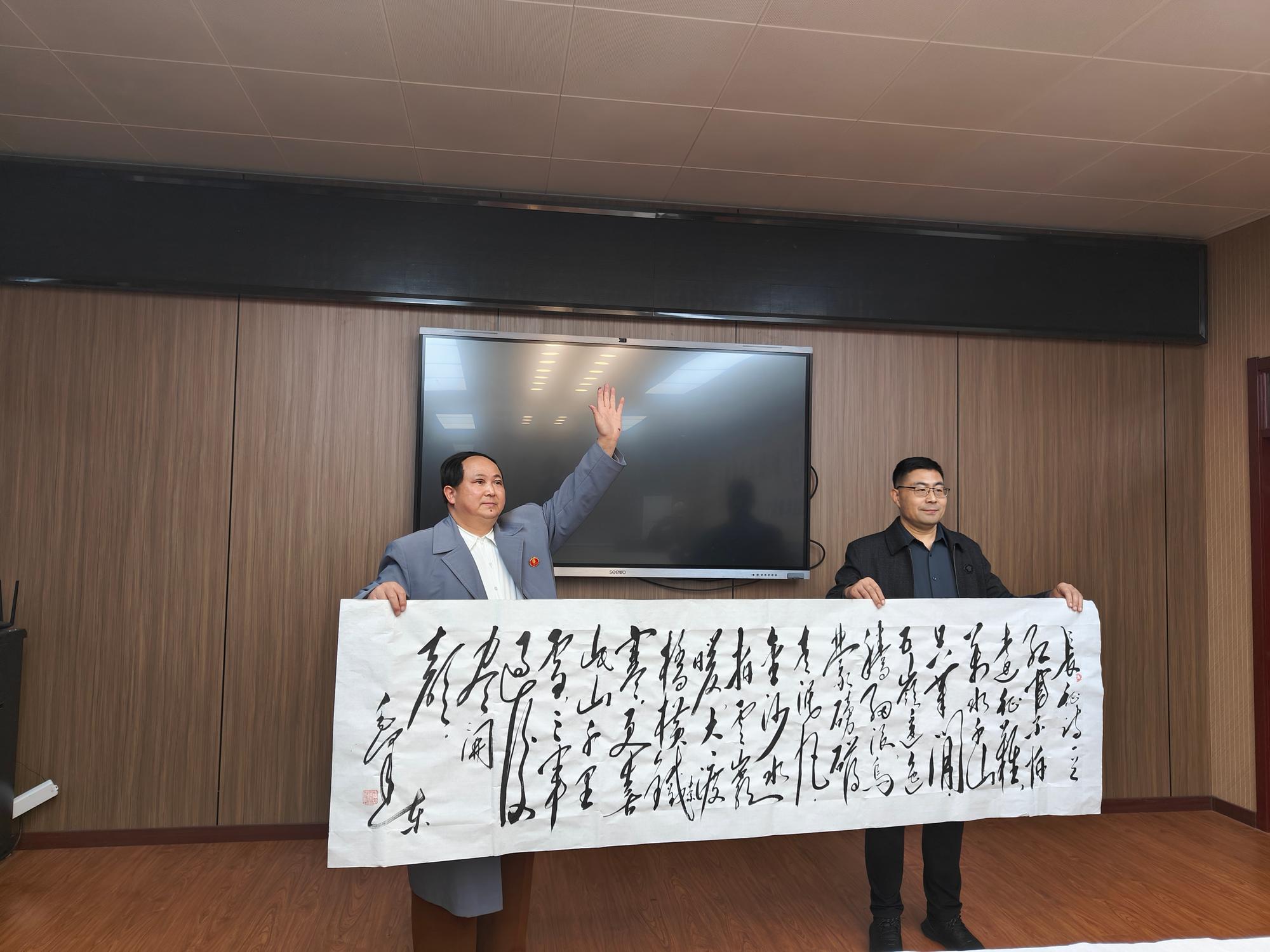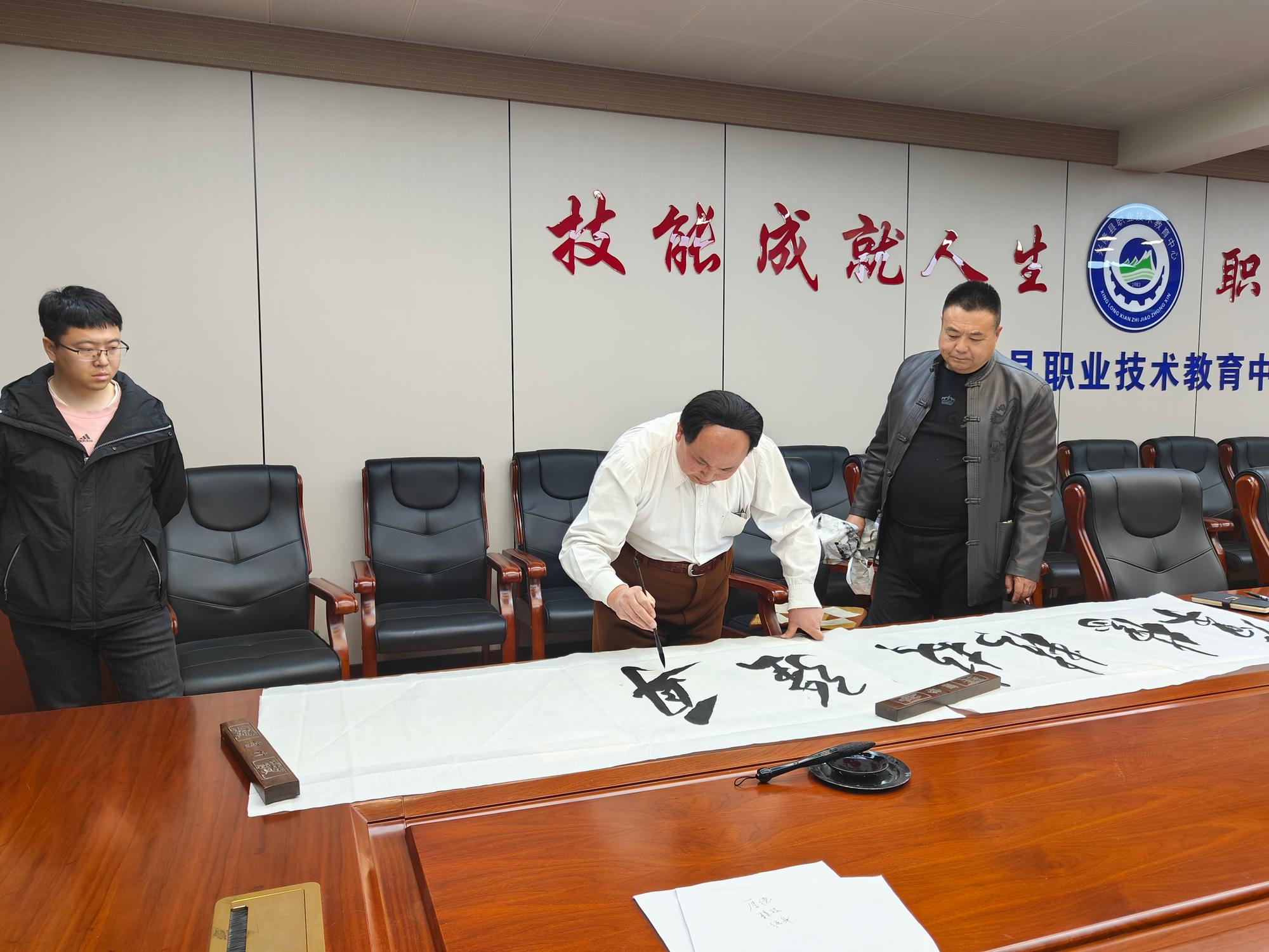 隨后,趙士奎老師移步至學(xué)校書(shū)法室,應(yīng)校領(lǐng)導(dǎo)的誠(chéng)摯邀請(qǐng),現(xiàn)場(chǎng)揮毫,為興隆縣職業(yè)教育中心題寫(xiě)了校訓(xùn),即《厚德、精技、強(qiáng)身》。并書(shū)寫(xiě)了詩(shī)詞《長(zhǎng)征》,此作品不僅向偉人致敬,更激勵(lì)著廣大師生傳承和發(fā)揚(yáng)長(zhǎng)征精神,為實(shí)現(xiàn)中華民族偉大復(fù)興的中國(guó)夢(mèng)不懈奮斗。