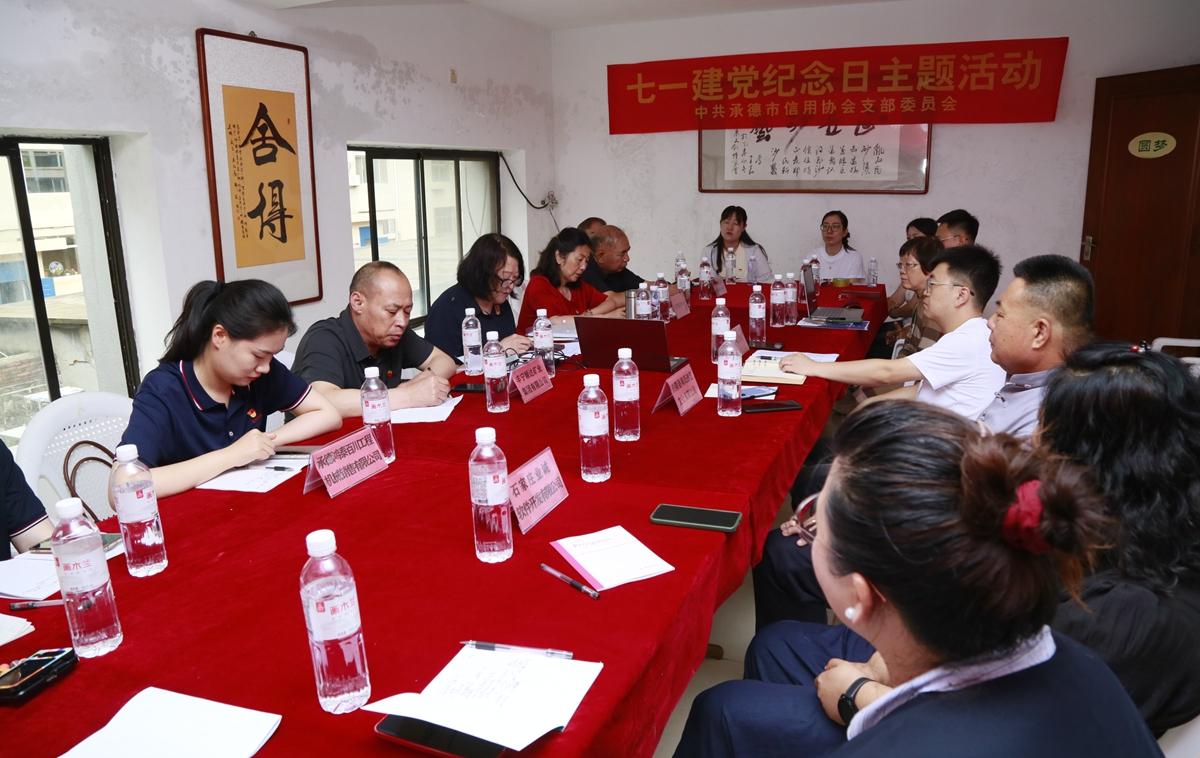 隨后,市信用協(xié)會黨支部開展了黨建交流環(huán)節(jié)。主持人王一然開場闡述建黨節(jié)意義及活動主題,鄭氏砂藝工會主席張國新分享企業(yè)發(fā)展成果。全體人員集中學習了2025年“七一”前夕中央重要會議精神,聚焦全面從嚴治黨、高質(zhì)量發(fā)展和誠信建設。緊接著,承德市信用協(xié)會黨支部書記高燕領(lǐng)誓,全體黨員重溫入黨誓詞,莊嚴承諾“為共產(chǎn)主義奮斗終身”。理事單位代表逐一介紹自身情況,豐寧順達礦業(yè)集團副總經(jīng)理武鳳寶、興隆縣工商聯(lián)秘書長丁小虎及信用協(xié)會顧問初海云分別發(fā)表講話。