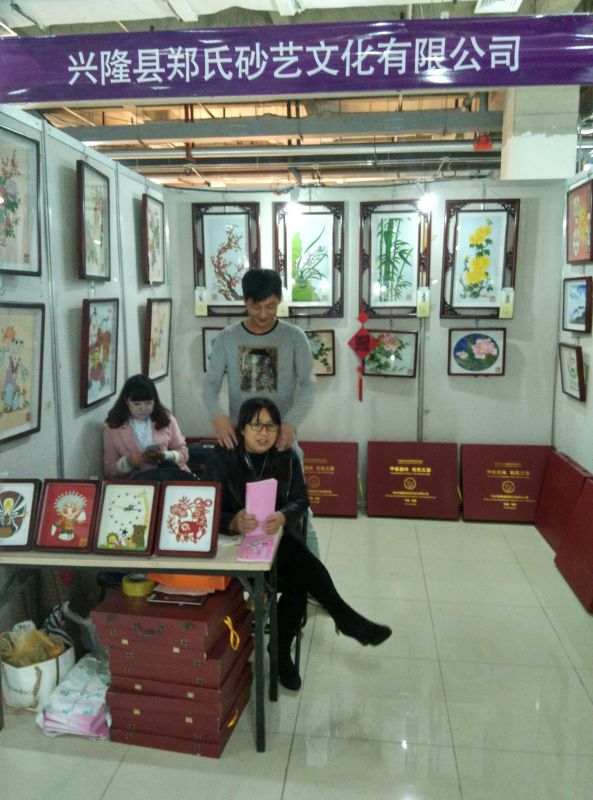 2015年10月16日--10月18日,興隆縣鄭氏砂藝文化有限公司參加了由河北省文化廳承辦的第四屆河北省特色文化產(chǎn)品博覽交易會(huì),地點(diǎn):石家莊樂城.國(guó)際貿(mào)易城,公司的砂畫產(chǎn)品在展會(huì)上受到廣大顧客的青睞。